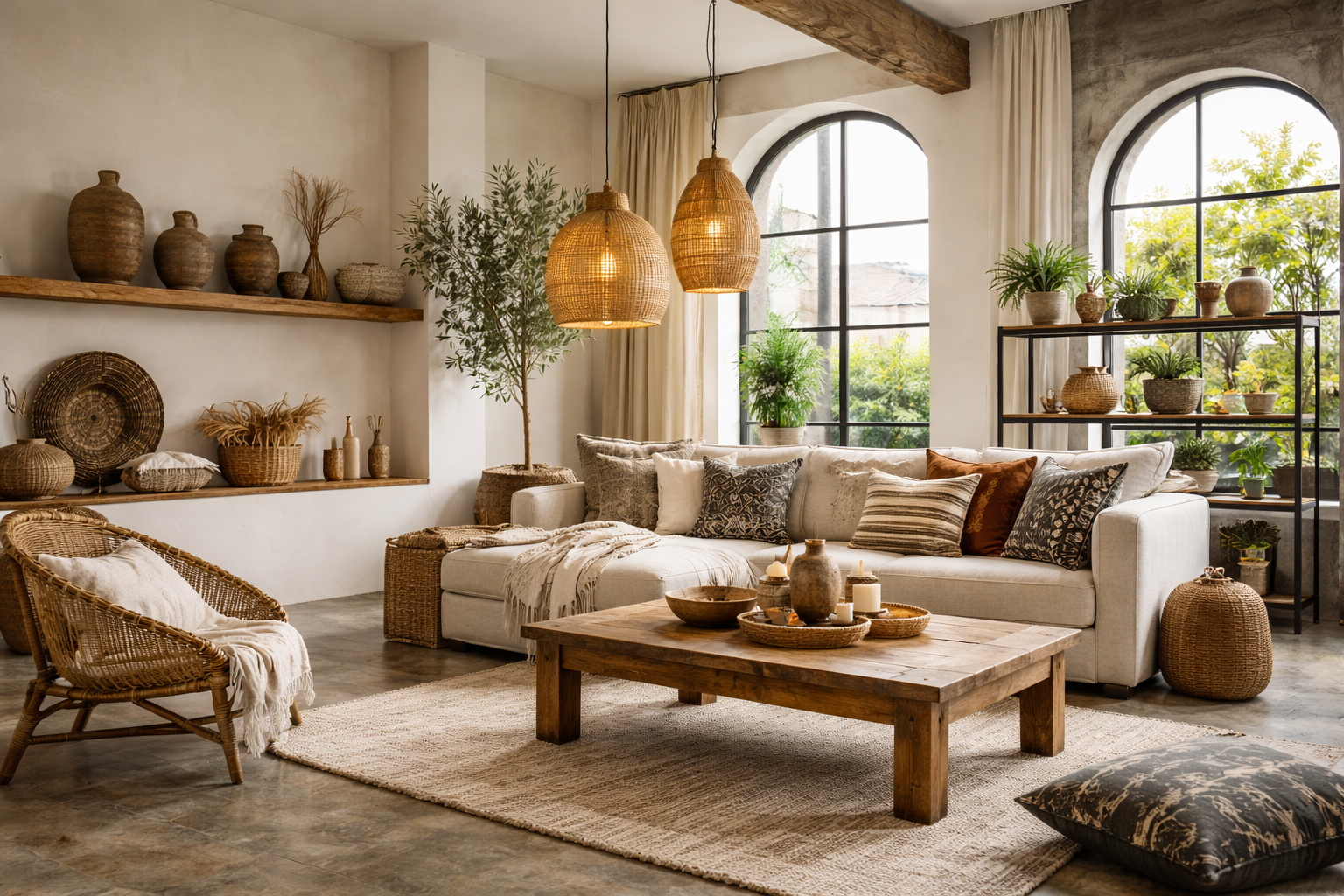 Этнический интерьер строится не на декоре, а на системе – сначала база, потом смысловые акценты.